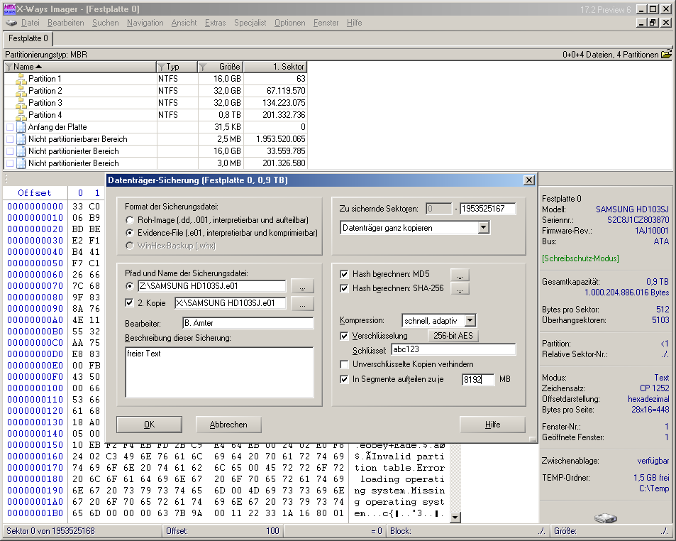 Imager erstellte Sicherungen erlauben X-Ways Forensics bei der