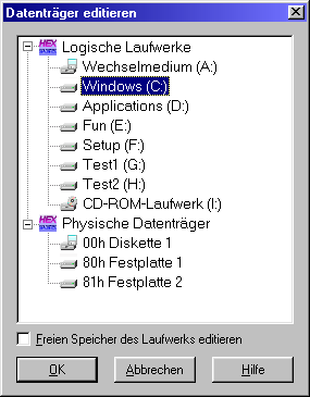• Disk-Editor für Festplatten, Disketten, CD-ROMs, DVDs, SmartMedia, CompactFlash, ...