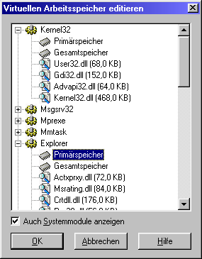 • RAM-Editor zum Editieren von RAM und virtuellem Speicher anderer Windows-Programme