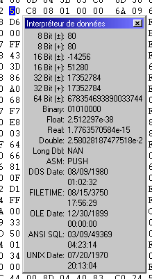 Pour les nombres entiers et en virgule flottante, les interprétations "poids faible